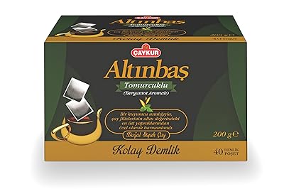 CAYKUR Altnbas Bergamot Teapot Bags Turkish Black Tea, Premium Upper Leaf & Early Harvest Selection, Earl Grey 40 Teapot Bags 200g 7.05 oz