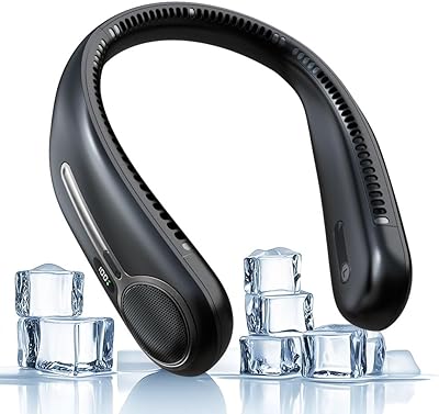 Portable Neck Fan,Hands Free Personal Wearable Bladeless Fan,6000mAh USB Rechargeable,360 Cooling,LED Display,4-Speeds,Birthday Gifts for Men Women Dad Mom,Valentines Day Gifts for Her Him Black