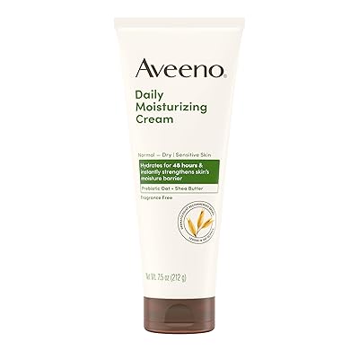 Aveeno Daily Moisturizing Cream with Prebiotic Oat & Shea Butter, Body, Face & Hand Cream for Normal to Dry, Sensitive Skin Hydrates for 48 Hours, Fragrance Free & Non-Comedogenic, 7.5 oz